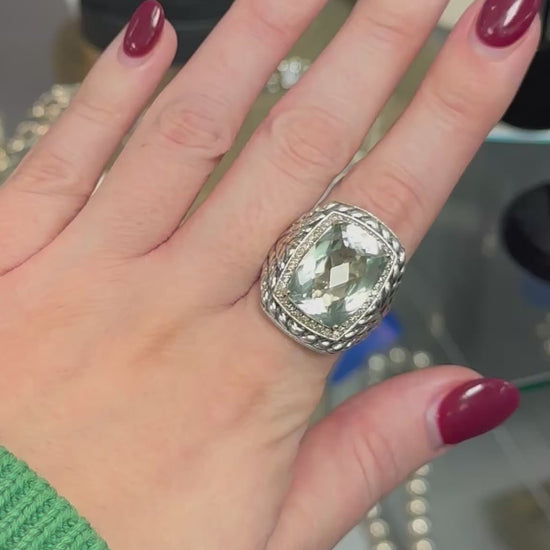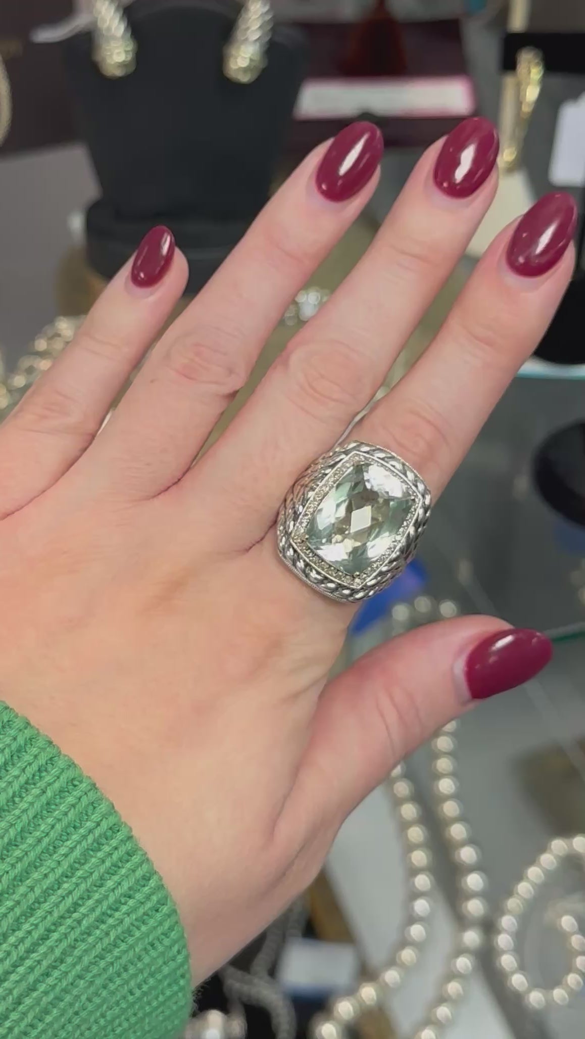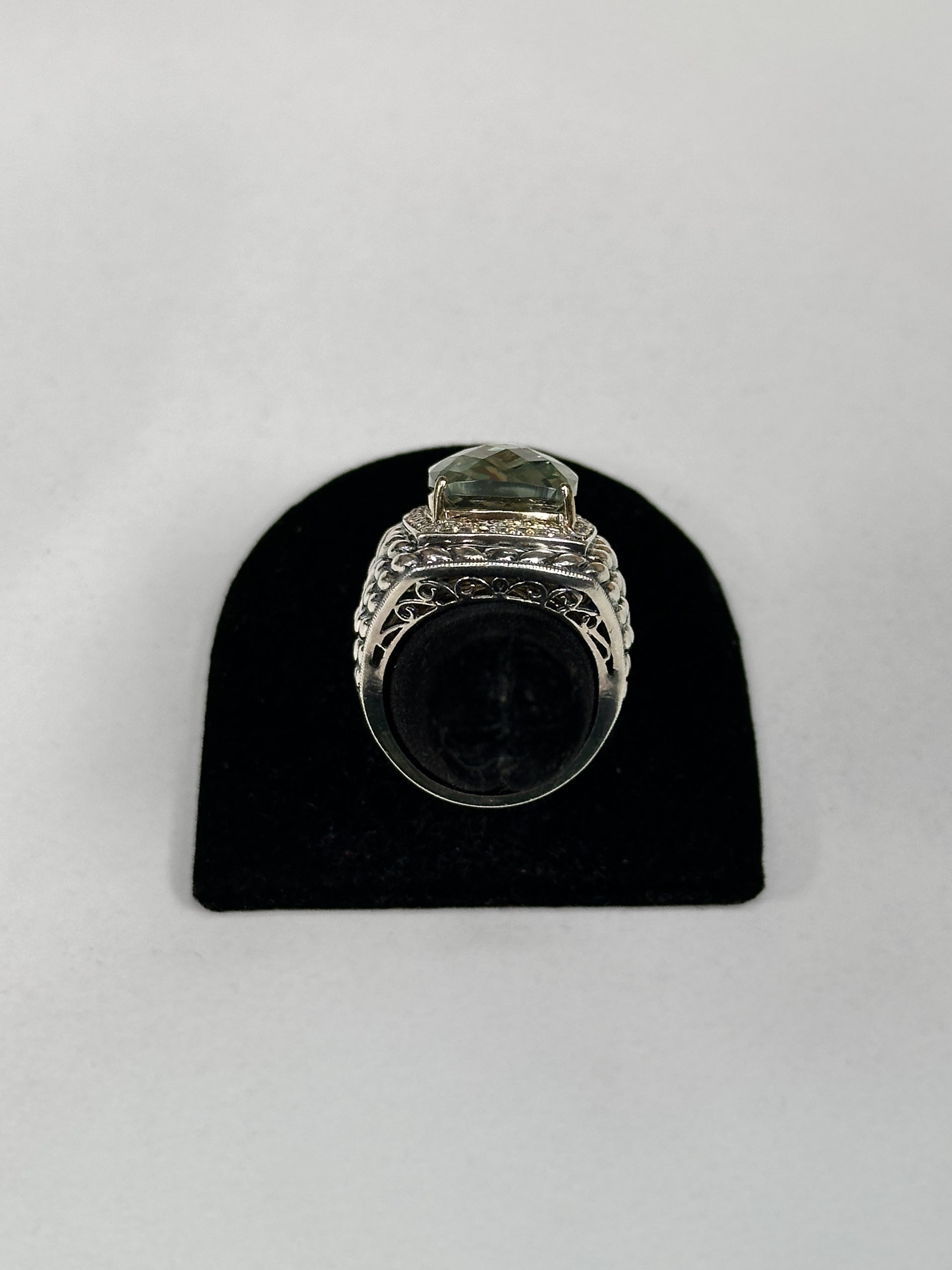 Size 8 Prasiolite Stone set in 14K gold, 925 sterling silver band